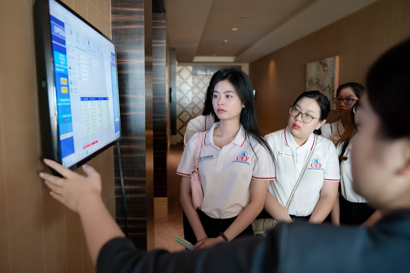 Trong suốt chuyến đi, UEFers được tiếp cận hệ thống sản phẩm và dịch vụ đặc trưng của khách sạn cao cấp: phòng nghỉ, nhà hàng, khu vực hồ bơi - spa, Bar & Coffee, Banquet, cùng các quy trình set-up tiệc Á - Âu theo tiêu chuẩn 5 sao. Các bạn cũng được tham gia thực hành tại những bộ phận cốt lõi như check-in/check-out, giới thiệu ẩm thực - đồ uống, quan sát quy trình buồng phòng, tìm hiểu tổ chức và vận hành các khu vực dịch vụ.
