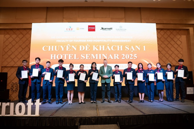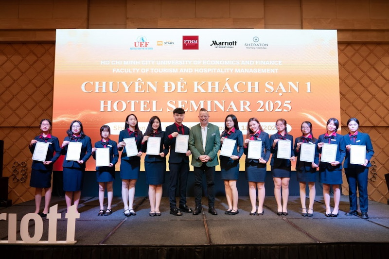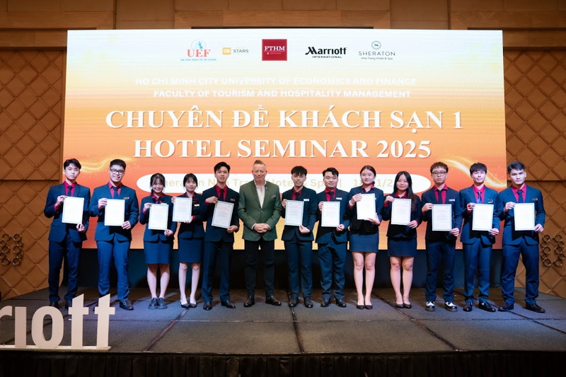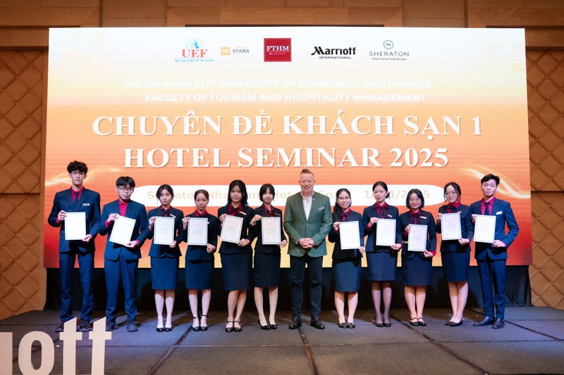Với mong muốn giúp sinh viên sớm tiếp cận môi trường vận hành khách sạn quốc tế, UEF đã triển khai tour học phần Chuyên đề khách sạn 1 cho sinh viên khóa 2024 ngành Quản trị khách sạn, Khoa Quản trị du lịch - Khách sạn diễn ra từ ngày 17 - 19/11 vừa qua tại Sheraton Nha Trang Hotel & Spa - khách sạn 5 sao thuộc tập đoàn Marriott International.