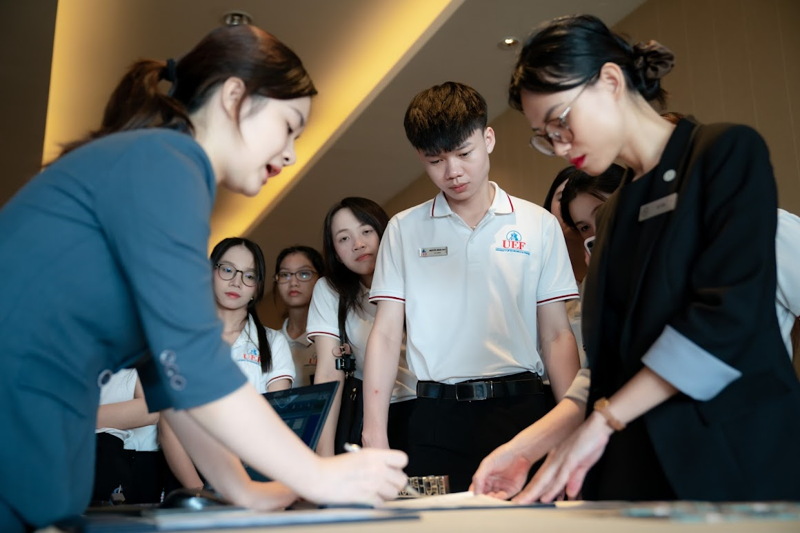 Suốt quá trình học và trải nghiệm thực tế, UEFers còn được trò chuyện với các thực tập sinh người Việt Nam và Hàn Quốc hiện đang làm việc tại Sheraton. Những câu chuyện về văn hóa làm việc, tiêu chuẩn phục vụ, trải nghiệm nghề và lộ trình phát triển thực tế đã mang đến cho các bạn cái nhìn chân thực về công việc tại khách sạn quốc tế.