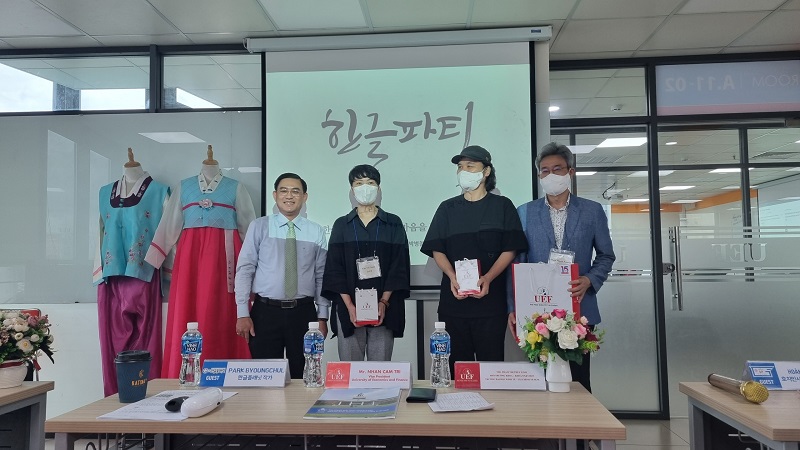 Về phía UEF có TS. Nhan Cẩm Trí – Phó Hiệu trưởng Nhà trường; ThS. Phạm Thị Thùy Linh – Phó Trưởng khoa Ngôn ngữ và Văn hóa quốc tế; thầy Choi Young Taek - Giảng viên Ngôn ngữ Hàn Quốc và các thầy cô giảng viên Khoa.
