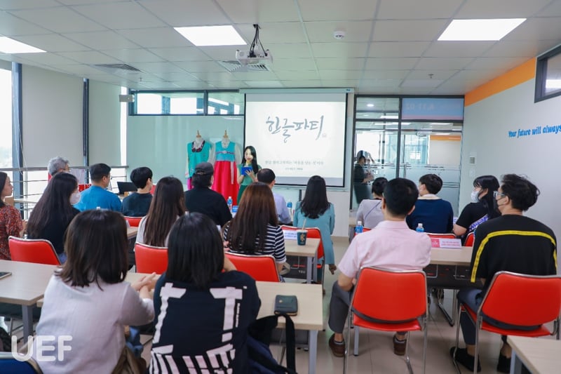Buổi workshop kết thúc với những chia sẻ và trải nghiệm bổ ích cho sinh viên Nhà UEF. Từ chương trình tìm hiểu văn hóa đặc biệt này, UEFers, đặc biệt là sinh viên ngành Ngôn ngữ Hàn Quốc đã có thêm một món quà ý nghĩa về mặt tinh thần, tiếp thêm động lực để đạt kết quả cao trong học tập.