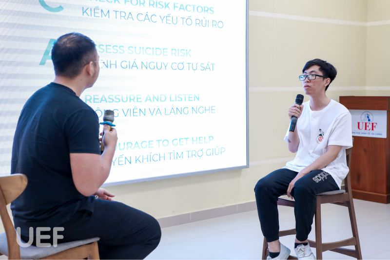 Trước những nguyên tắc cần lưu ý của FAMH: Không chẩn đoán; không điều trị, chữa trị; không phán xét; không tranh cãi với người có bệnh sức khỏe tinh thần,... diễn giả nhấn mạnh hậu quả nghiêm trọng của việc tự ý “chữa lành” cho người khác. Song song đó, sinh viên Nhà UEF cũng được tiếp cận với các thông tin về nguyên nhân gây bệnh lý tâm thần, căn bệnh trầm cảm và rối loạn lo âu, nguy cơ tự sát,...