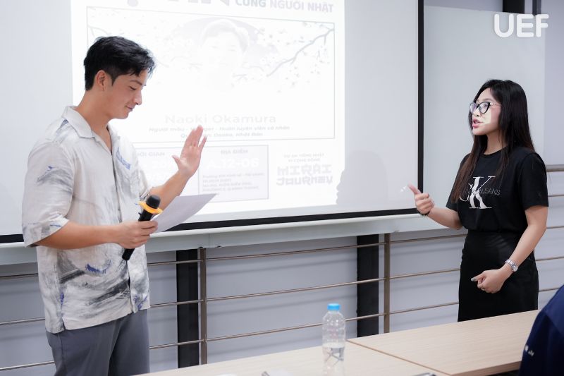 Thấu hiểu điều đó, tối ngày 8/5, buổi giao lưu “Tự tin nói tiếng Nhật cùng người Nhật” đã diễn ra với sự đồng hành của khách mời Naoki Okamura đến từ Osaka, Nhật Bản, hiện là người mẫu, vlogger, huấn luyện viên cá nhân. Chương trình mang đến một không gian học tập gần gũi, thực tế, cũng như truyền cảm hứng mạnh mẽ cho những ai yêu thích ngôn ngữ và văn hóa Nhật Bản.