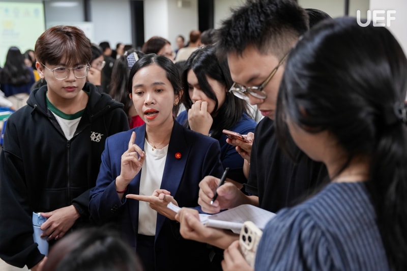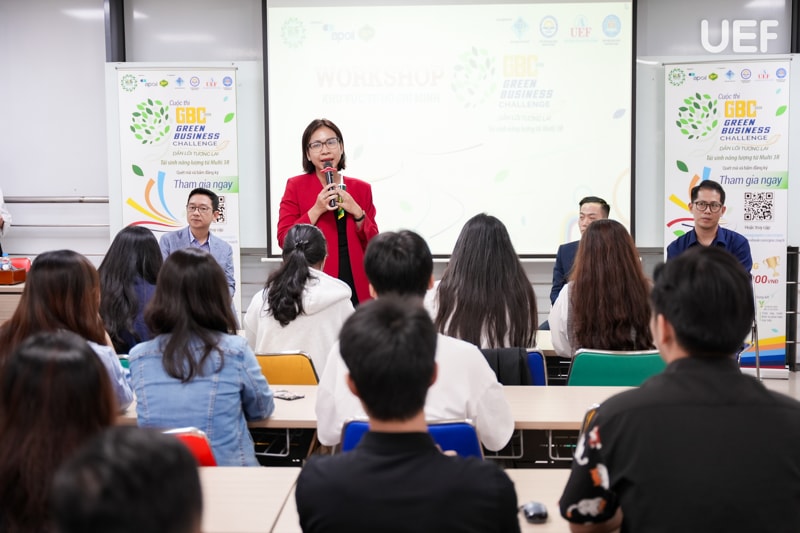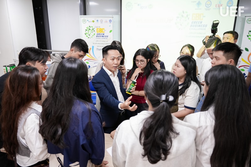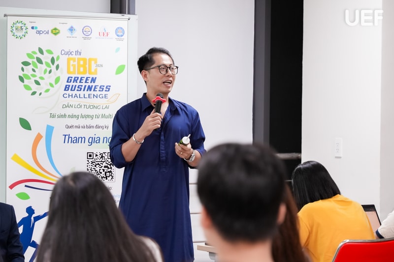 Trong khuôn khổ cuộc thi “Green Business Challenge 2026”, các thí sinh đã có buổi tập huấn kỹ năng đặc biệt cùng các huấn luyện viên. Chương trình diễn ra vào tối 25/11 tại UEF đã mang đến một không gian học tập đầy năng lượng. Các “chiến binh xanh” được kết nối, được truyền cảm hứng và được định hướng để hoàn thiện mô hình kinh doanh theo tinh thần phát triển bền vững. Các chuyên gia đã mang đến cho sinh viên góc nhìn thực tiễn về thị trường, sản phẩm, truyền thông và tư duy khởi nghiệp xanh.