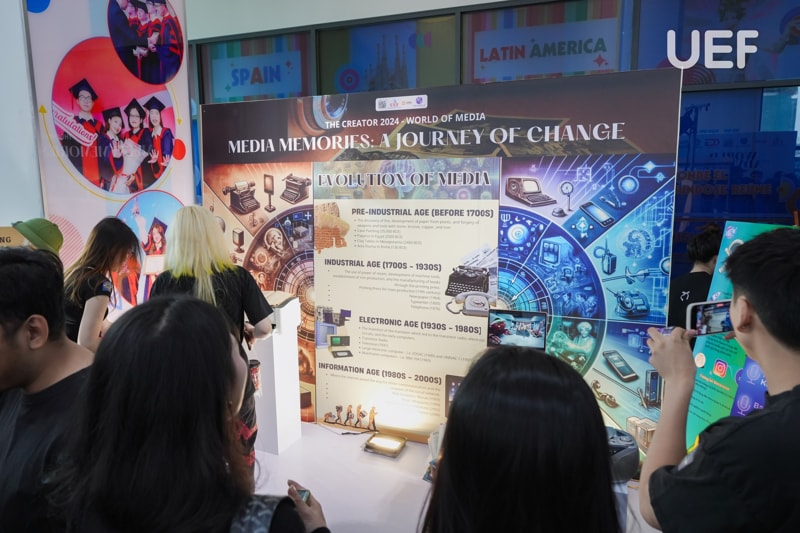 Trong sáng cùng ngày, triển lãm "The Creator 2024" với 8 không gian trưng bày sáng tạo về các xu hướng và công cụ Marketing hiện đại cũng đã diễn ra sôi nổi. Đây là sản phẩm cuối kỳ của học phần Nhập môn Quản trị sự kiện. Đến với từng không gian, những người tham dự đã có những trải nghiệm thú vị cùng các hoạt động sáng tạo, vui nhộn.
