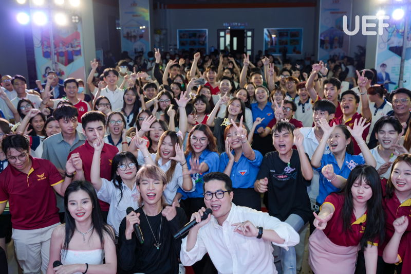 Không khí chương trình tiếp tục được khuấy động với không gian âm nhạc đặc sắc và sôi động. Sự góp mặt của các tài năng nghệ thuật từ Nhà UEF, từ All-Star VN Media và cả sự kết hợp giữa thầy trò Khoa Quản trị kinh doanh đã làm sân khấu Welcome Freshmen khóa 2024 thực sự bùng nổ.