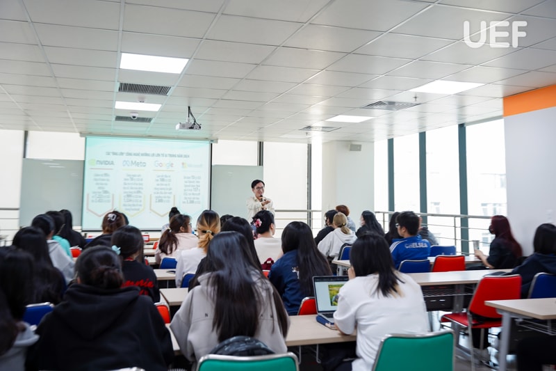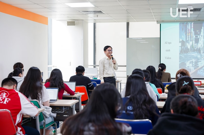 Sinh viên UEF chăm chú lắng nghe những phân tích chuyên sâu về AI trong lĩnh vực tài chính