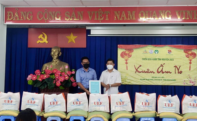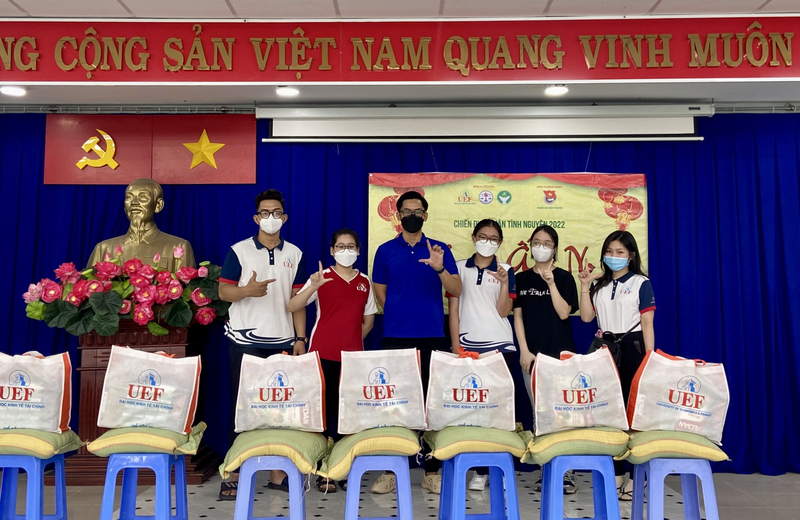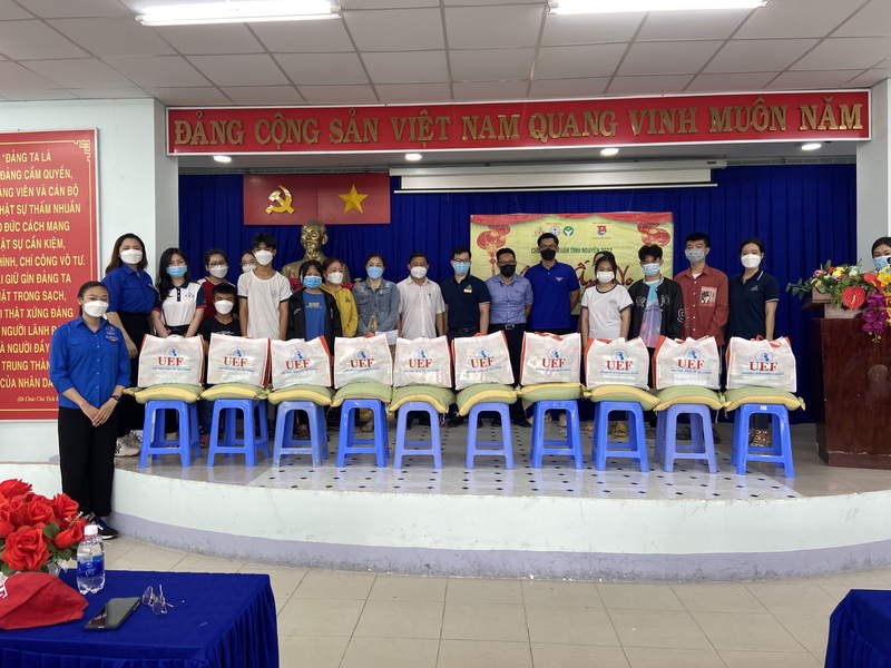 Sáng ngày 23/1, Liên Chi đoàn (LCĐ) khoa Luật UEF phối hợp cùng Đoàn xã Hiệp Phước, huyện Nhà Bè, TP.HCM tổ chức chương trình Xuân tình nguyện 2022 với chủ đề "Xuân ấm no". Hoạt động đã trao tặng 30 phần quà trị giá 15.000.000 đồng cho trẻ em khuyết tật, mồ côi, có hoàn cảnh khó khăn chịu ảnh hưởng của dịch bệnh.