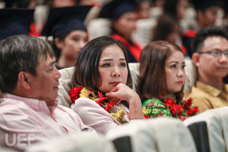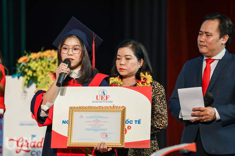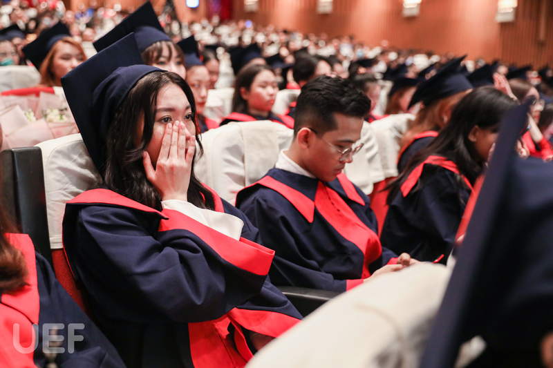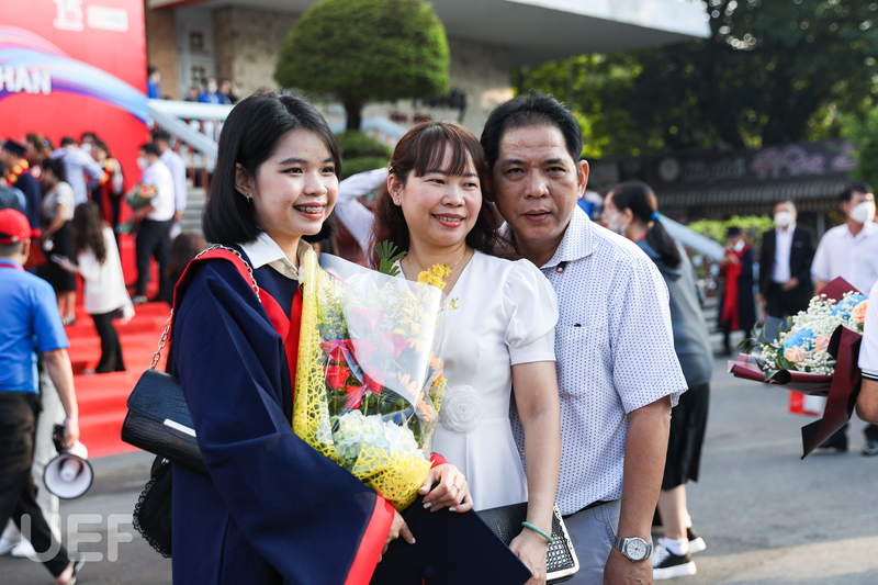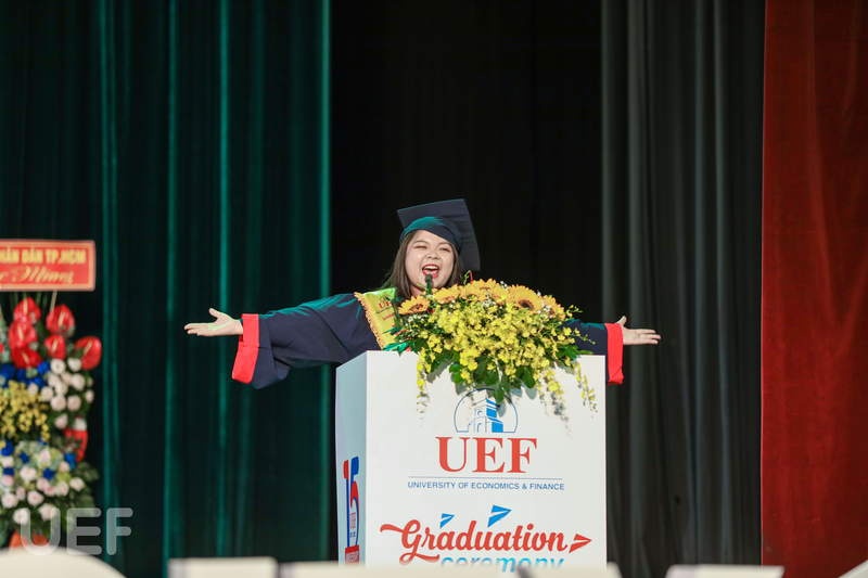“Cảm ơn gia đình đã luôn là điểm tựa vững chắc, yêu thương chúng con bằng tất cả lòng vị tha và bao dung. Cảm ơn thầy cô đã luôn yêu thương và đồng hành cùng chúng con, giúp chúng con phát triển bản thân và có một thanh xuân thật đẹp tại ngôi nhà UEF”. Bằng sự chân thành, cô bạn thủ khoa Đặng Ngọc Minh Thư đã mang đến không khí bồi hồi, xúc động cho tất cả thầy cô, bạn bè và gia đình trong buổi lễ tốt nghiệp.