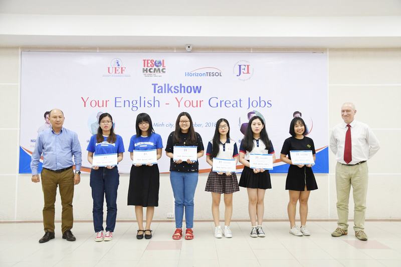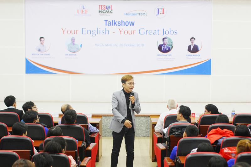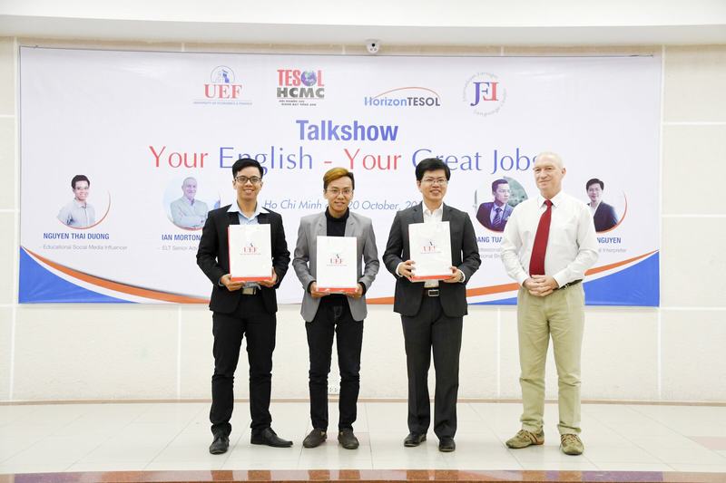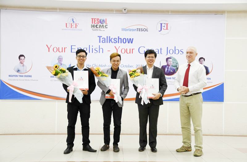 Sáng ngày 20/10, talkshow “Your English – Your great jobs” với nhiều thông tin về kinh nghiệm ứng dụng tiếng Anh vào học tập, công việc đã diễn ra tại trường Trường Đại học Kinh tế - Tài chính thành phố Hồ Chí Minh (UEF). Chương trình do UEF phối hợp với Trung tâm Horizon TESOL, Hội Nghiên cứu và Giảng dạy tiếng Anh TP.HCM và Trung tâm Ngoại ngữ Báo chí – Thông Tấn Xã Việt Nam tổ chức.