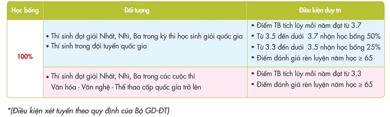 Lưu ý: Điểm dùng đế xét Học bổng không bao gồm Điểm ưu tiên.
