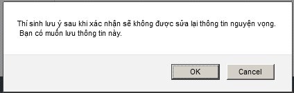 -  Sau khi popup xác nhận xóa xuất hiện, nếu muốn xóa nguyện vọng, thí sinh nhấn nút OK, ngược lại nhấn nút Cancel