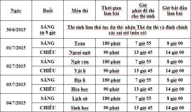 Trước đó, từ 8 giờ sáng 30.6, thí sinh sẽ làm thủ tục dự thi, nhận thẻ dự thi và đính chính các sai sót nếu có.