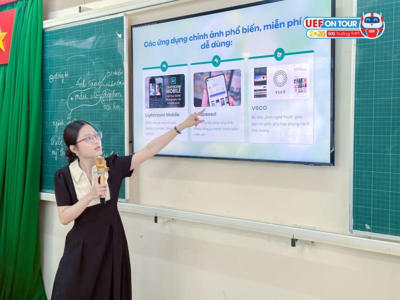 Ngày 4/4, UEF tiếp tục tổ chức chuyên đề “Nhiếp ảnh cơ bản bằng điện thoại” dành cho học sinh Trường THPT Dương Văn Dương trong khuôn khổ chương trình hướng dẫn CLB Truyền thông. Chuyên đề tập trung trang bị cho học sinh những kỹ năng chụp ảnh cơ bản, giúp nâng cao chất lượng hình ảnh phục vụ hoạt động truyền thông học đường.