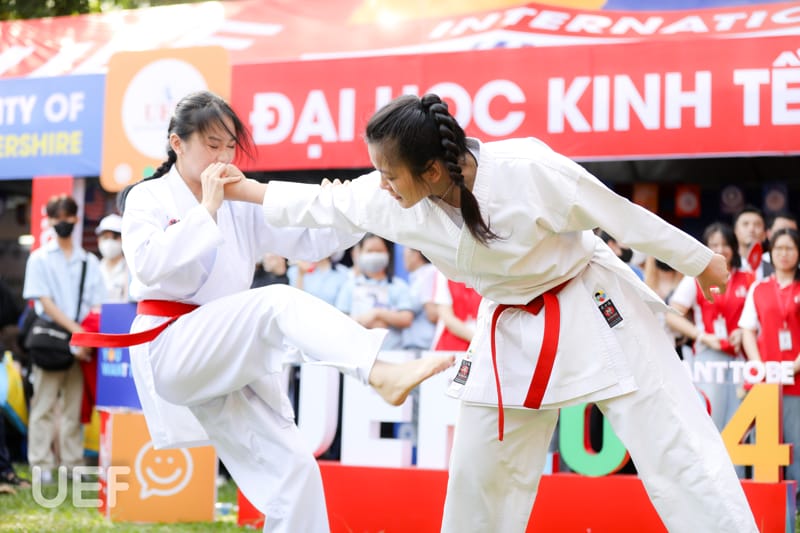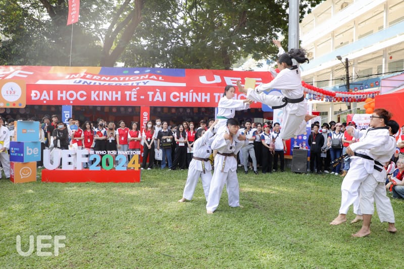“Đặc sản” không thể thiếu của Nhà UEF tại ngày hội là những hoạt động văn nghệ, võ thuật và minigame thú vị. Không chỉ được lắng nghe các thông tin về tuyển sinh đại học 2024, team 2k6 ra về còn mang theo nhiều “dấu ấn” UEF như túi xách, sổ tay, gấu bông, viết,....