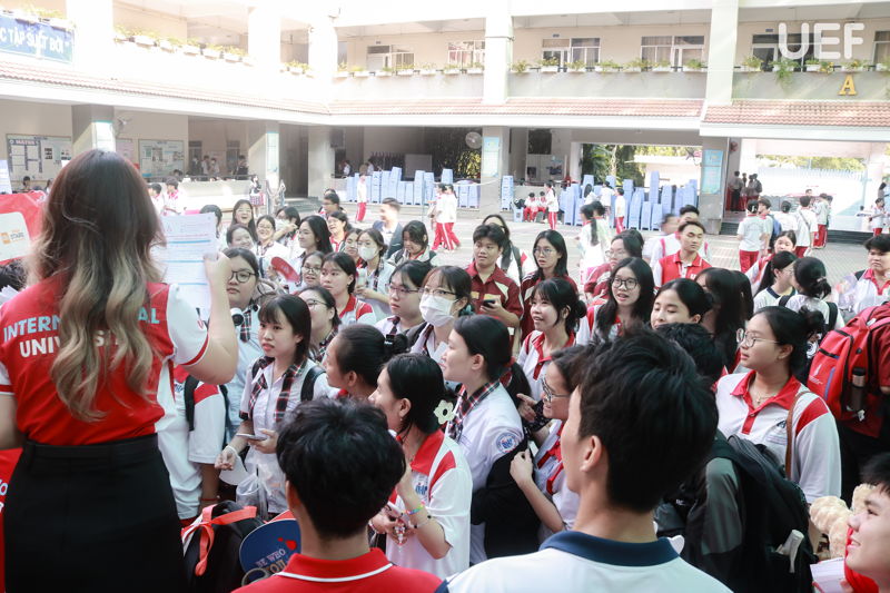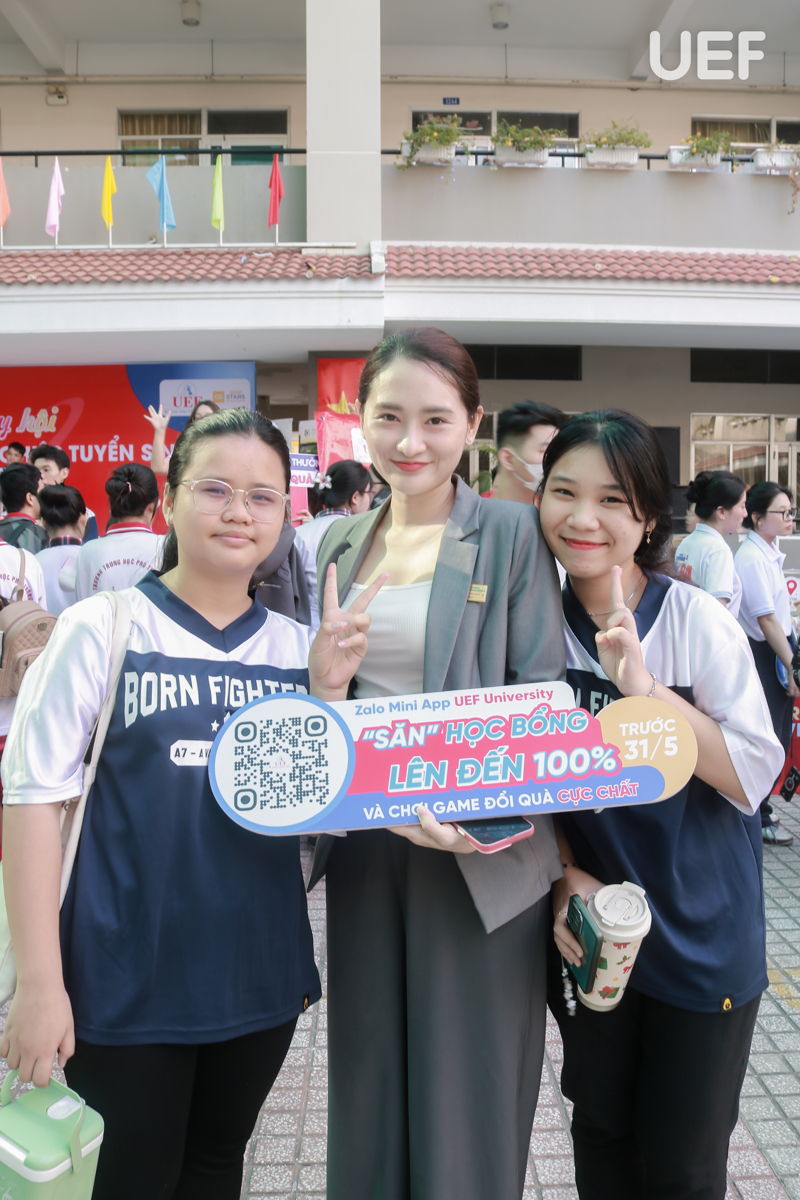 Đặc biệt, chương trình cũng ghi nhận sự quan tâm tích cực từ học sinh đối với chính sách đăng ký học bổng sớm năm 2025 của UEF. Nhiều học sinh đã chủ động đăng ký học bổng ngay trong ngày hội để nắm bắt cơ hội học tập và rèn luyện trong một môi trường đại học năng động, chuẩn quốc tế với mức học phí hợp lý, chính sách hỗ trợ tài chính hấp dẫn.