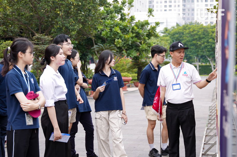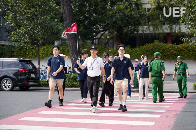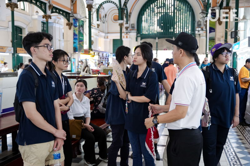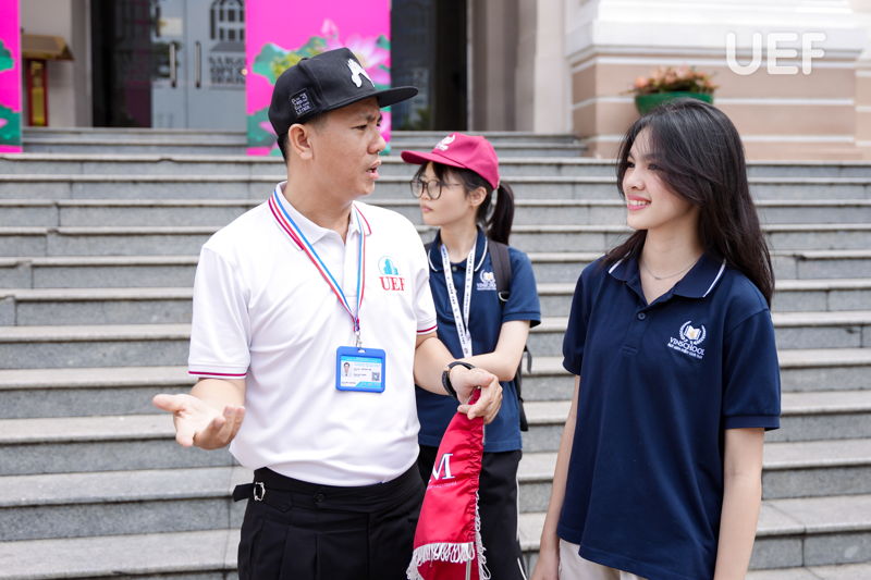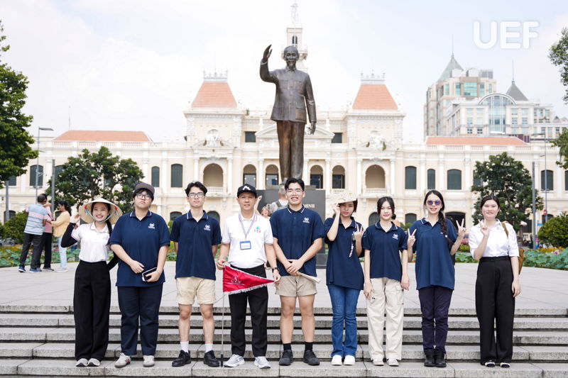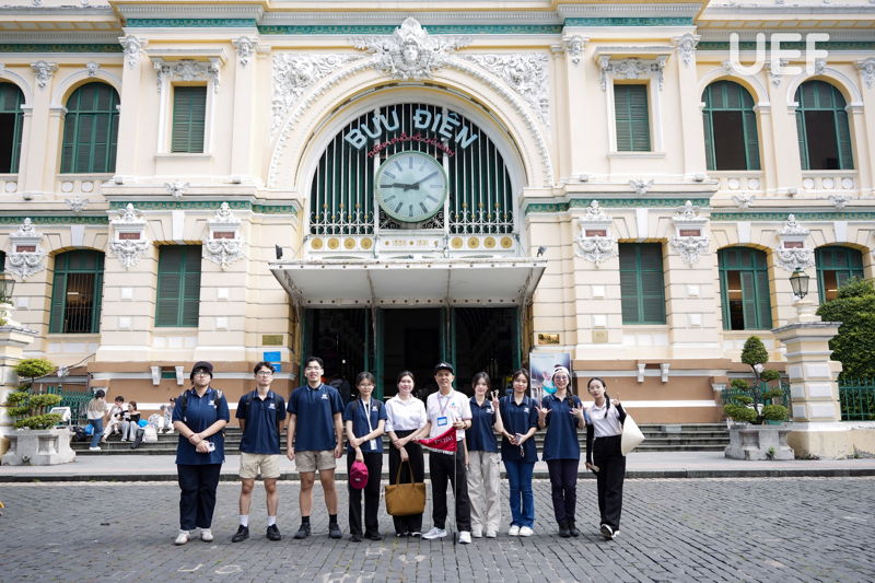 Đồng hành với học sinh Vinschool là ThS. Trần Đình Tuấn - Trưởng ngành Quản trị dịch vụ du lịch và lữ hành, Khoa Quản trị du lịch - Khách sạn. Chuyến đi đưa cả đoàn tham quan những địa điểm nổi bật ở Sài Gòn như Nhà thờ Đức Bà, Bưu điện thành phố, Bảo tàng Hồ Chí Minh, Miếu Thiên Hậu, Chợ Bình Tây,...