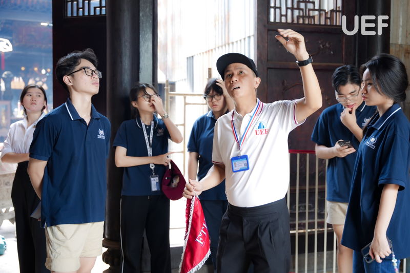 Khởi hành từ sớm trong trạng thái hứng khởi để khám phá những nét văn hóa đặc sắc từ xa xưa của mảnh đất Sài Gòn, nhóm học sinh Vinschool cho biết đây là một hành trình thú vị, mang lại nhiều kiến thức mới về văn hóa, lịch sử và kiến trúc. Tại mỗi điểm đến, ThS. Trần Đình Tuấn đều thuyết minh chi tiết, có cả những câu chuyện lần đầu các bạn học sinh được nghe. Không chỉ chia sẻ thông tin, thầy còn tận tình hướng dẫn các bạn những nghiệp vụ liên quan trong quá trình dẫn khách du lịch.