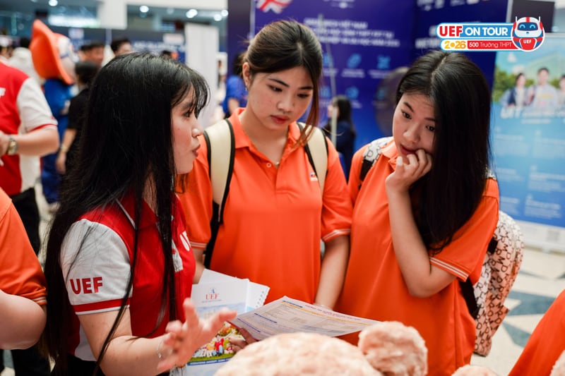 Tại khu vực tư vấn, UEF ghi nhận lượng lớn học sinh quan tâm đến thông tin tổng quan về các ngành đào tạo, cơ hội nghề nghiệp sau tốt nghiệp cũng như môi trường học tập năng động theo định hướng song ngữ - quốc tế. Nhiều bạn học sinh cho biết mong muốn được tìm hiểu kỹ hơn về chương trình học, hoạt động trải nghiệm, cơ hội thực tập, kiến tập và các lợi thế khi lựa chọn một môi trường đào tạo gắn với chuẩn hội nhập.