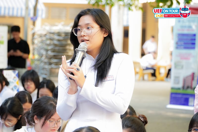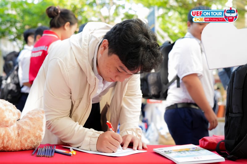 “Em có tìm hiểu thông tin trực tuyến về phương thức xét tuyển và chính sách xét học bổng sớm của UEF từ trước. Hôm nay khi trường đến tư vấn trực tiếp, em đã chủ động đăng ký học bổng sớm ngành Marketing. Em thấy chính sách này có nhiều lợi ích cho học sinh, đặc biệt là trước kỳ thi quan trọng sắp tới”, bạn Lương Nhật Trường (Lớp 12A2) chia sẻ.
