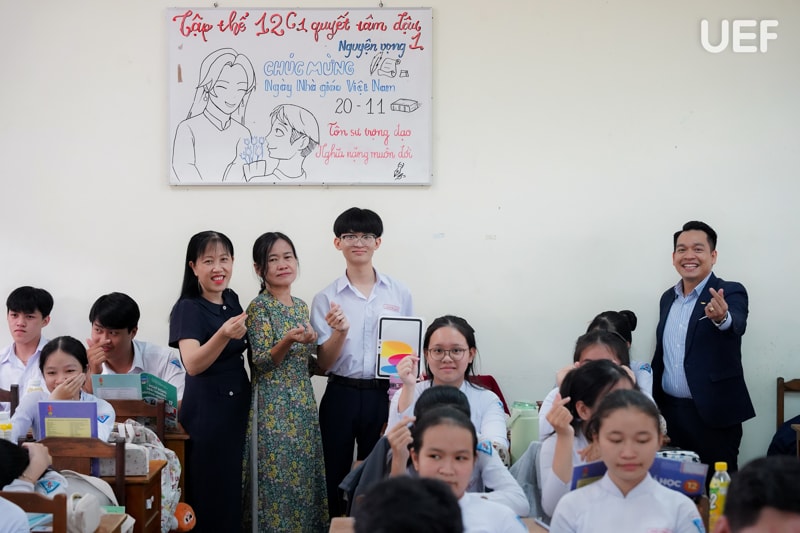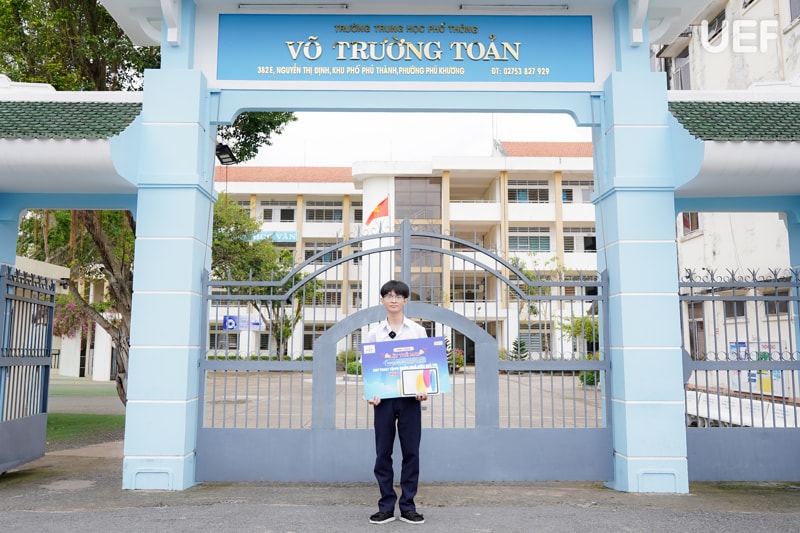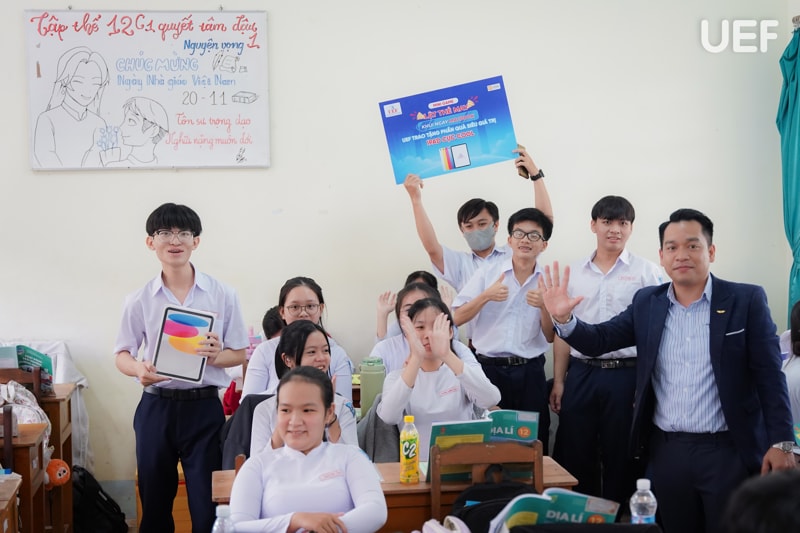 Mới đây, niềm vui ấy đã “gõ cửa” bạn Lê Vũ Tân - học sinh lớp 12 Trường THPT Võ Trường Toản (Vĩnh Long) khi bạn đã may mắn trúng iPad từ minigame trên MiniApp “UEF University”. Bên cạnh đó, bạn cũng đạt điều kiện cho mức học bổng 50% khi đăng ký xét tuyển vào UEF.