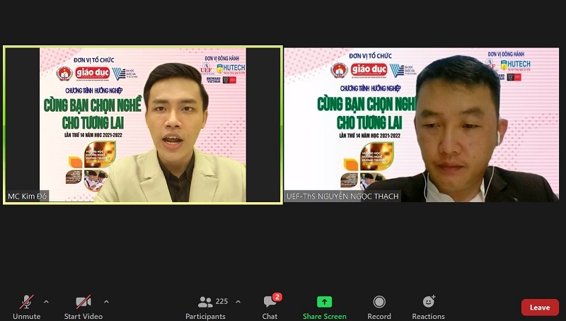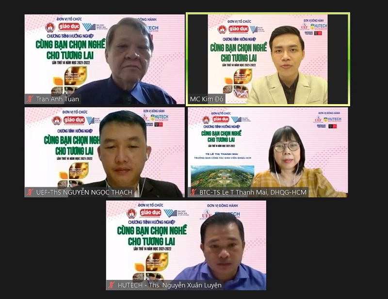 Chương trình có sự đồng hành của Nhà báo Nguyễn Thanh Tú – Tổng Biên tập Tạp chí Giáo dục TP.HCM – Trưởng ban tổ chức, TS. Lê Thị Thanh Mai - Trưởng Ban Công tác sinh viên - ĐHQG TP.HCM, ông Trần Anh Tuấn - Chuyên gia dự báo nguồn nhân lực và thị trường lao động, ThS. Nguyễn Ngọc Thạch – Phó Giám đốc Trung tâm tư vấn tuyển sinh UEF, ThS. Nguyễn Xuân Luyện – Phó Trưởng phòng Tư vấn tuyển sinh HUTECH.