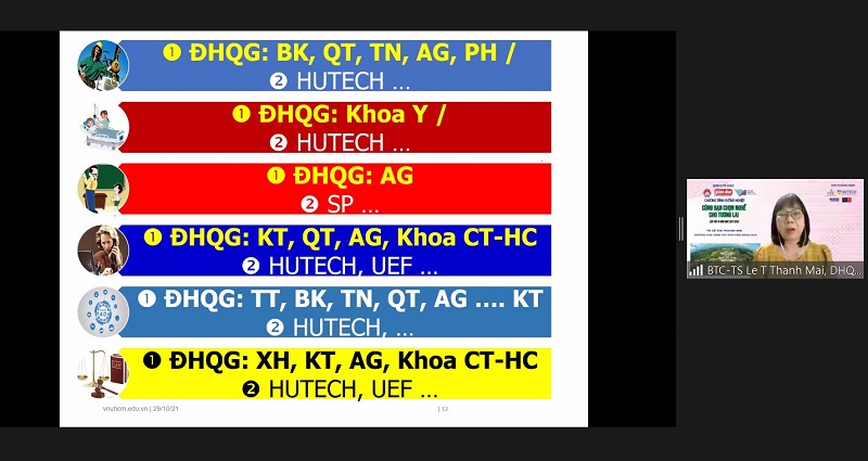 Mở đầu buổi tư vấn hướng nghiệp năm học 2021 – 2022 đầu tiên tại tỉnh Bình Dương, TS. Lê Thị Thanh Mai đã giúp các bạn học sinh nắm bắt bí quyết định vị ngành nghề theo đối tượng, trang bị thông tin về hệ thống giáo dục quốc dân, các nhóm ngành cùng địa chỉ đào tạo tương ứng, phương thức tuyển sinh tiêu biểu,…
