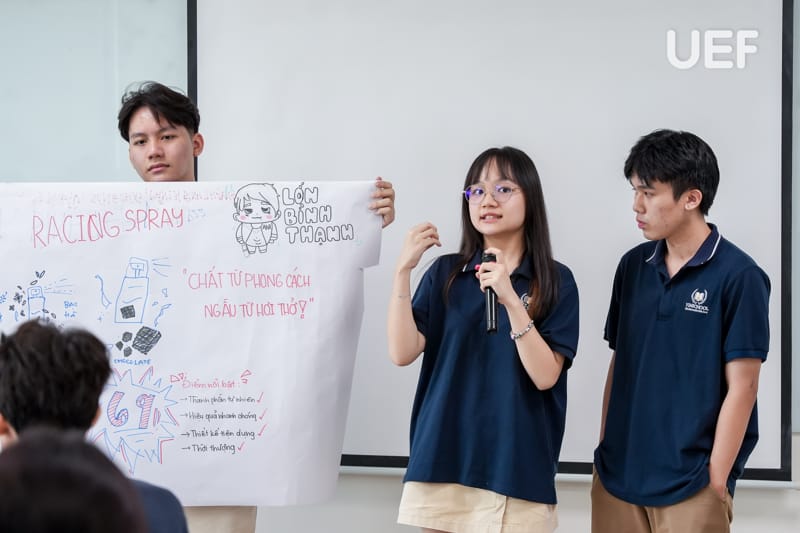 Sau phần lý thuyết, các bạn đã tiến hành các hoạt động nhóm, giới thiệu đội ngũ, đề xuất ý tưởng, xây dựng chiến lược và thực hành thuyết trình về sản phẩm. Dưới sự hướng dẫn của cô Phong Linh, Vinsers cũng đã thực hành các bài tập về hơi thở, khẩu âm và cách truyền cảm trong giọng nói để tạo nền tảng vững chắc cho phần thuyết trình.