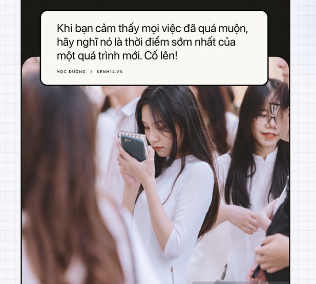Bạn có nhớ về những lần thức trắng đêm không ngủ, bỏ dở cả chương trình yêu thích phát trên ti vi, gác qua những chầu cà phê cuối tuần với bạn, ăn vội bữa cơm mẹ nấu vì điều gì không? Chẳng phải là vì những mong ước về một ngôi trường đại học mình đã định, về một công việc mình đã từng mơ hay sao? Bạn ơi, vì đã nhọc công học hành suốt 12 năm qua, và nhất là đối mặt với cả núi căng thẳng năm cuối cấp nên đừng vội nản chí ngay lúc này, nhớ lại lý do mình đã cố gắng mà dành trọn vẹn tâm trí cho kỳ thi sắp tới.