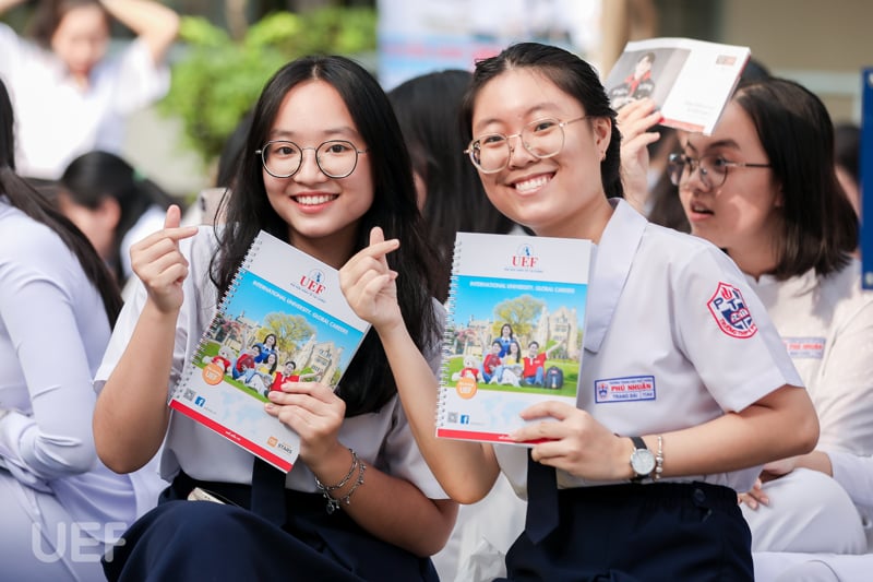 Bên cạnh những lưu ý về kỳ thi tốt nghiệp THPT 2024 và phương thức tuyển sinh, các bạn còn nhận được sự tư vấn chi tiết từ các trường đại học tham gia chương trình. Tìm hiểu về UEF, học sinh được giải đáp cặn kẽ về chương trình học song ngữ, cơ hội việc làm, cách thức xét tuyển, chính sách học bổng,... của trường. Đồng thời nhận được các ấn phẩm trang bị thêm thông tin tổng quan về UEF và những phần quà khích lệ. Đặc biệt, nhiều thí sinh quan tâm đến phương thức xét học bạ và dự định nộp hồ sơ xét tuyển sớm tại UEF vào đợt 15/1 tới đây.