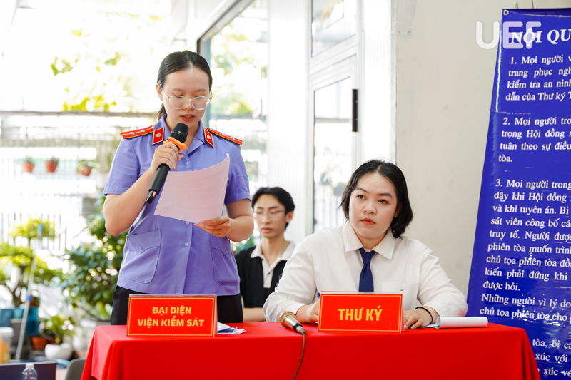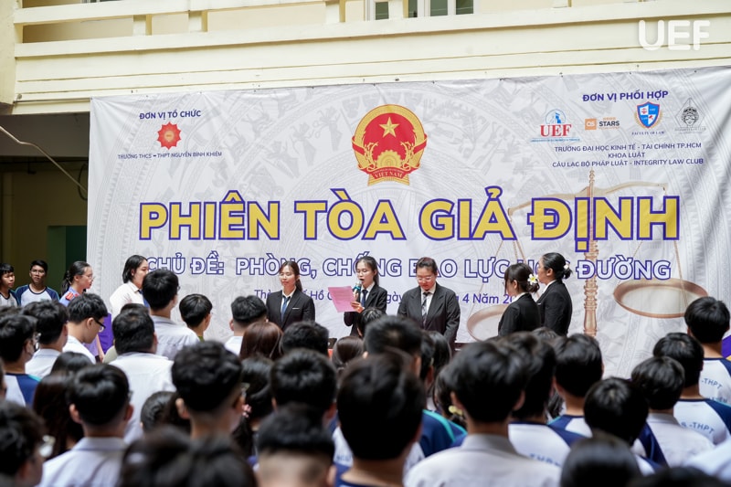 Một điểm nhấn đặc biệt của Khoa Luật UEF là mô hình “Phiên tòa giả định” được tổ chức thường niên. Đây là chương trình mô phỏng tái hiện đúng không khí của một phiên tòa để xét xử một vấn đề liên quan. Ở đó, sinh viên đóng vai trò là công tố viên, bị cáo, luật sư,... để thực hành kỹ năng tố tụng, phản biện và lập luận.