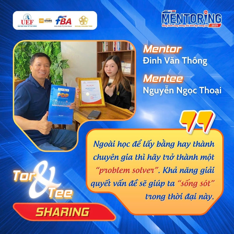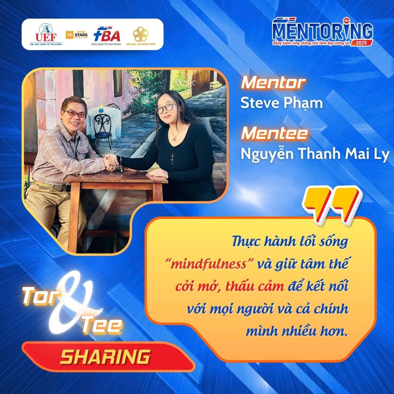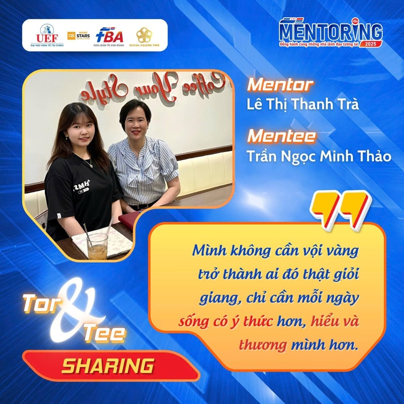 Tại UEF, sinh viên được học tập không chỉ qua giáo trình mà còn qua chính những hoạt động học thuật, sự kiện mô phỏng doanh nghiệp và các cuộc thi chuyên ngành. Trong đó, nổi bật và tạo ra nhiều sự thay đổi “ngoạn mục” cho sinh viên là dự án Mentoring.
