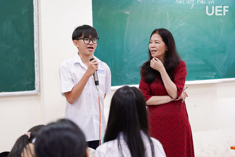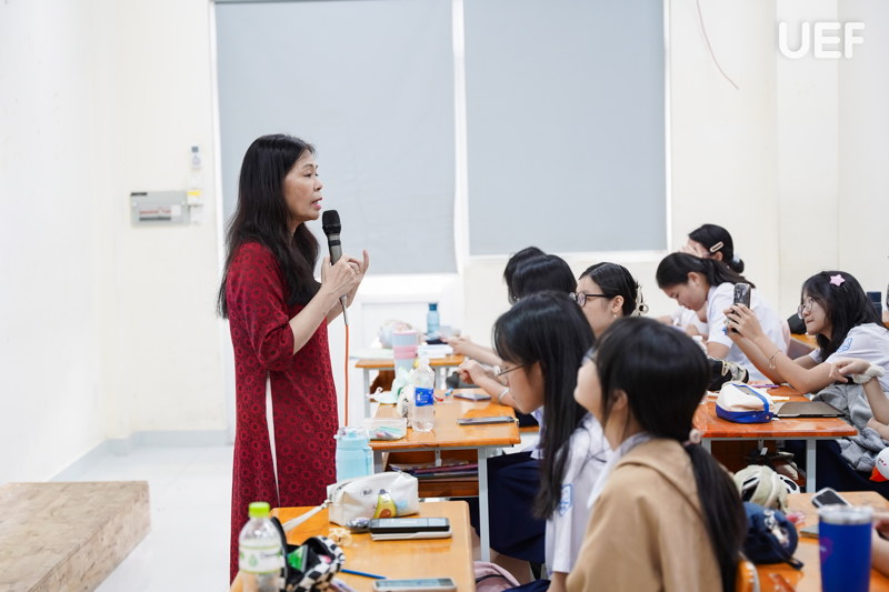Ở buổi học đầu tiên, ThS. Lê Phương Cát Nhi - Phó Trưởng Khoa Quan hệ quốc tế UEF đã dẫn dắt học sinh tìm hiểu những khái niệm nền tảng về toàn cầu hóa và công dân toàn cầu. Qua hoạt động khởi động thú vị “Thế giới trong túi em”, các bạn học sinh nhận ra ngay trong những vật dụng quen thuộc hằng ngày đã mang dấu ấn của nhiều quốc gia khác nhau, từ chiếc áo, đôi giày cho đến chiếc điện thoại thông minh.