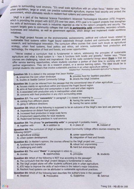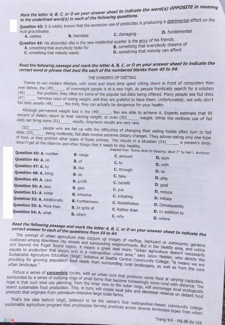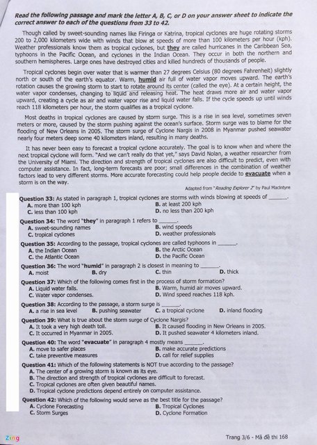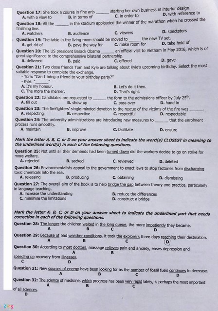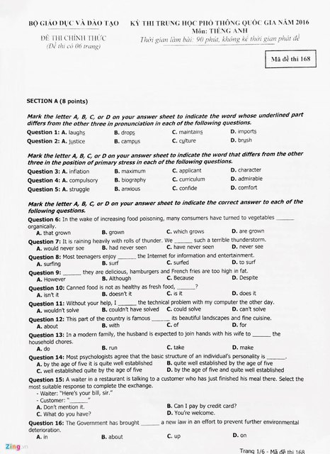 Dưới đây là đề thi và đáp án chính thức của môn Ngoại ngữ - kỳ thi THPT quốc gia 2016: