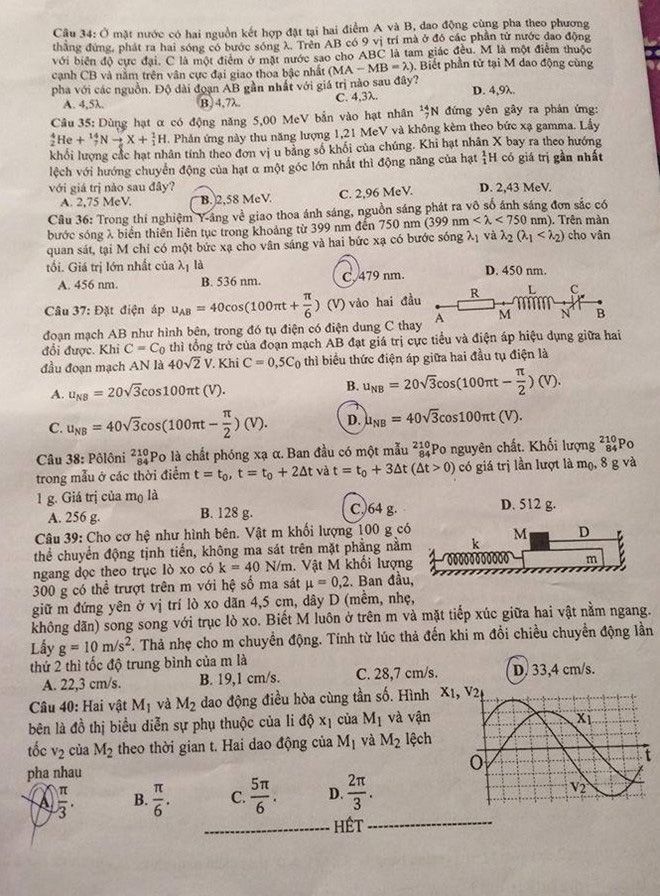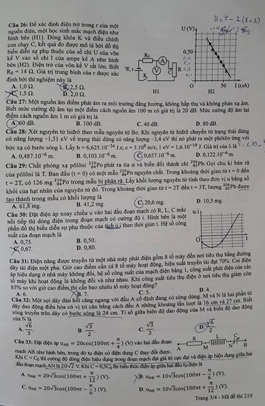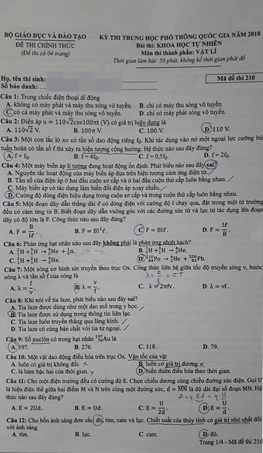 Đề thi môn Vật lý - kỳ thi THPT Quốc gia 2018: