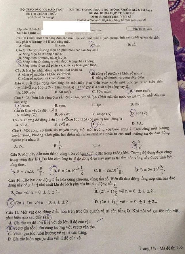 Mã đề 206