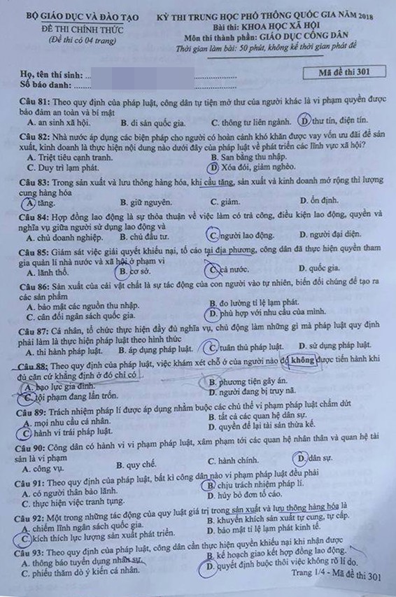 | 101. B | 102. C | 103. C | 104. D | 105. B | 106. C | 107. B | 108. A | 109. D | 110. A |