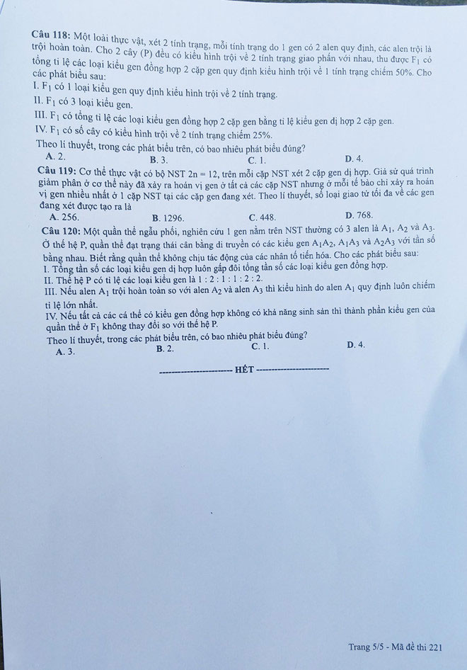 Mã đề thi 221