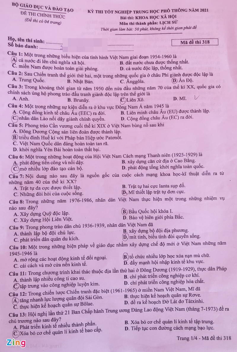 > Gợi ý đáp án môn Lịch sử - kỳ thi tốt nghiệp THPT 2021 đợt 1