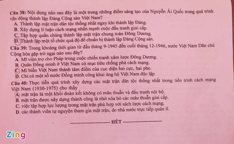 Cùng thời điểm 7g35 sáng 8/7 với môn Vật lý - Bài thi Khoa học tự nhiên là môn thi thành phần đầu tiên của bài thi Khoa học xã hội - môn Lịch sử, thời gian làm bài 50 phút với hình thức thi trắc nghiệm.