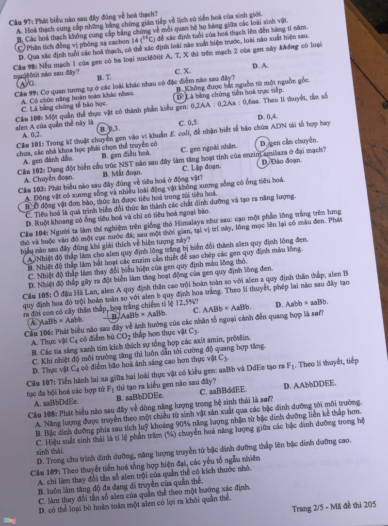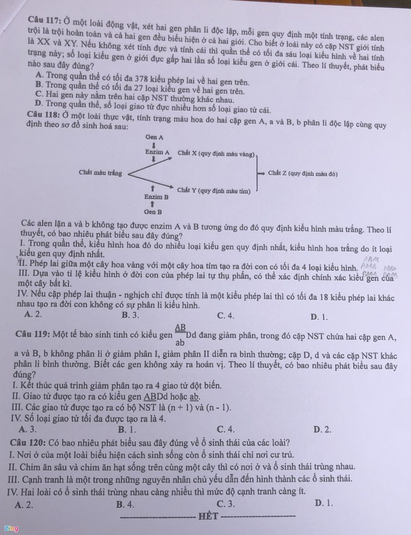 > Đáp án chính thức môn Sinh học - kỳ thi tốt nghiệp THPT 2022