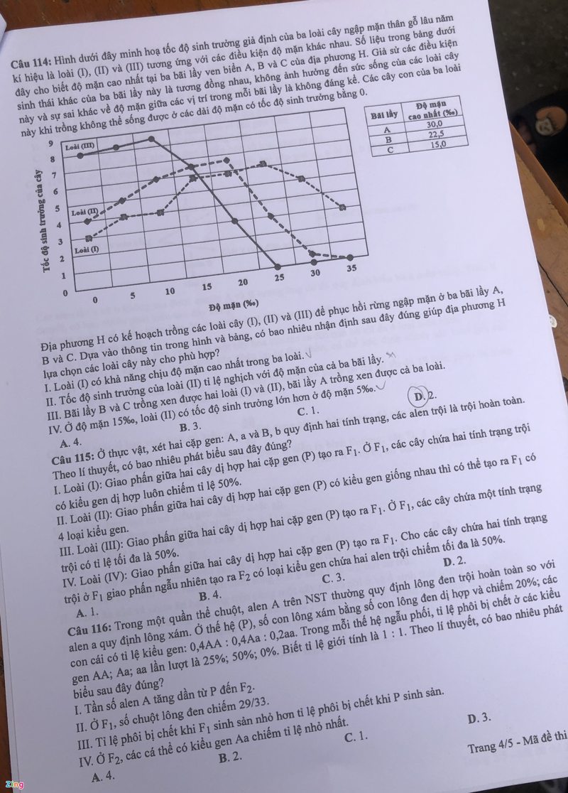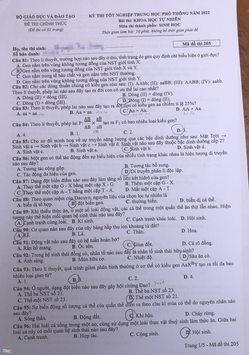 > Đề thi môn Sinh học - kỳ thi tốt nghiệp THPT 2022