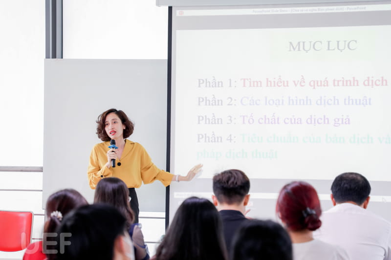 Ngành Ngôn ngữ Trung Quốc UEF sở hữu đội ngũ giảng viên am hiểu chuyên môn, giàu kinh nghiệm giảng dạy và biên - phiên dịch. Mỗi giảng viên đều mang đến cho sinh viên nền tảng kiến thức chuẩn mực, kỹ năng ngôn ngữ vững chắc cùng góc nhìn thực tiễn về nghề nghiệp. Nhiều thầy cô từng đảm nhiệm vai trò phiên dịch cho các hội nghị, dự án hợp tác quốc tế hoặc làm việc tại doanh nghiệp, tổ chức nước ngoài, nhờ đó truyền tải cho sinh viên những kinh nghiệm quý giá. Đây chính là nguồn cảm hứng để người học kiên định theo đuổi đam mê và mục tiêu nghề nghiệp dài hạn.