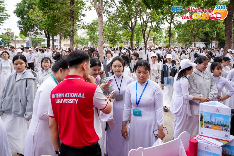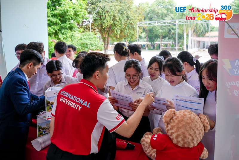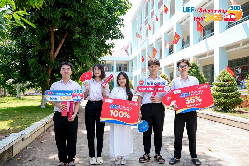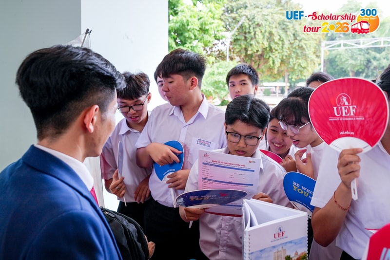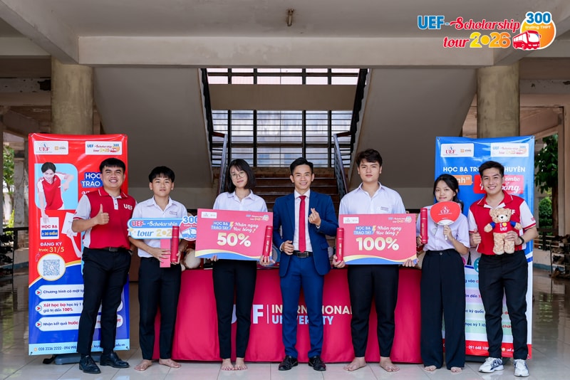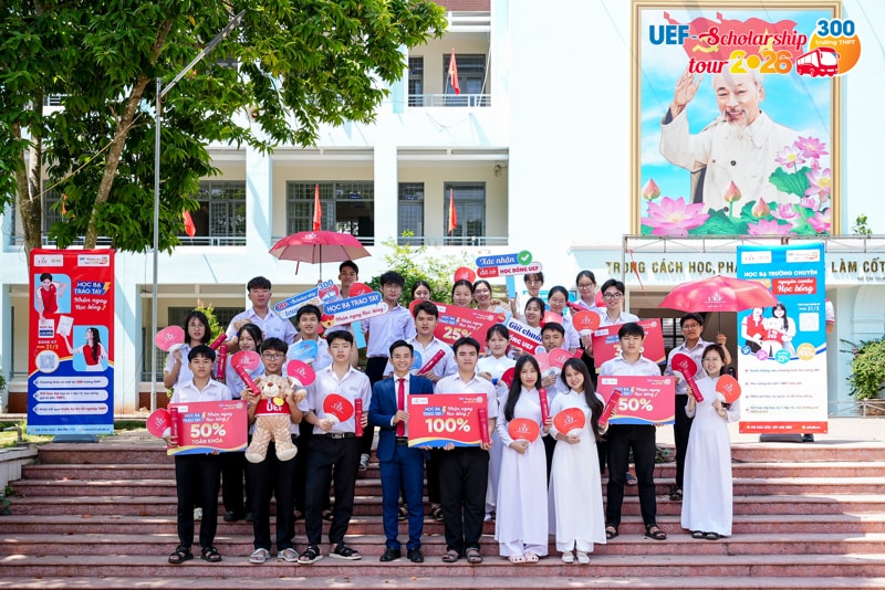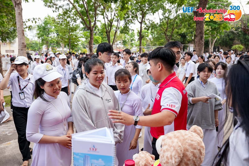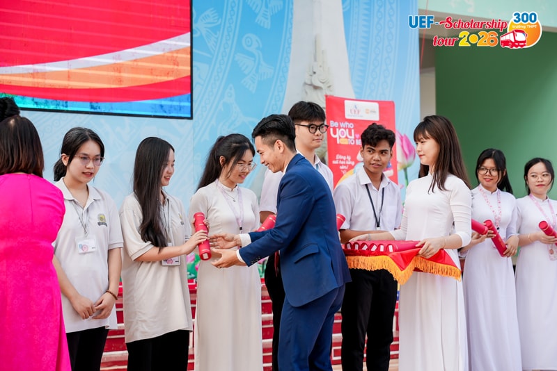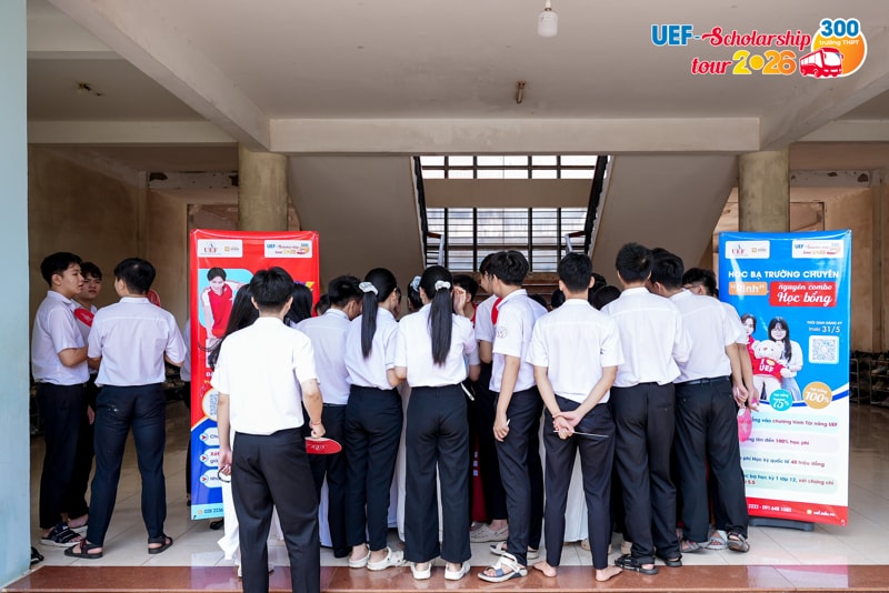Từ rất sớm trước khi diễn ra kỳ thi tốt nghiệp THPT, nhiều học sinh đã chủ động tạo lợi thế cho bản thân bằng cách đăng ký xét học bổng sớm của UEF. Đây được xem như "điểm tựa chiến lược" giúp các bạn tự tin và thoải mái hơn khi đối diện với thử thách quan trọng. Để ghi nhận những nỗ lực và tiếp thêm động lực cho 2k8 trước khi bước vào kỳ thi quyết định, Nhà trường đã chính thức khởi động chương trình UEF Scholarship Tour 2026 vào ngày 06/04, trao học bổng đến tận tay các thí sinh đã đăng ký sớm và đủ điều kiện.