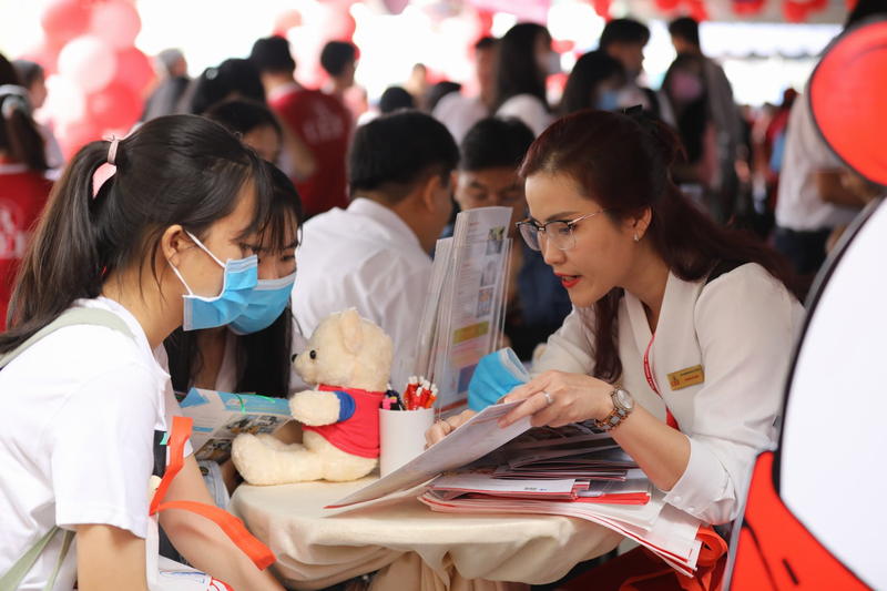 Bạn Đặng Thị Mỹ Nhàn - Trường THPT Long Thành (Đồng Nai) chia sẻ: “Em thấy không khí ngày hội rất sôi động. Với nguyện vọng theo học ngành Tài chính ngân hàng, thầy cô UEF đã giúp em giải đáp tất cả thắc mắc về ngành này. Đặc biệt, môi trường đào tạo song ngữ tại UEF là điều kiện thuận lợi để học tập và trải nghiệm. Đó cũng là cầu nối giúp em có được cơ hội gặp gỡ những chuyên gia đến từ các doanh nghiệp, ngân hàng có yếu tố quốc tế”.