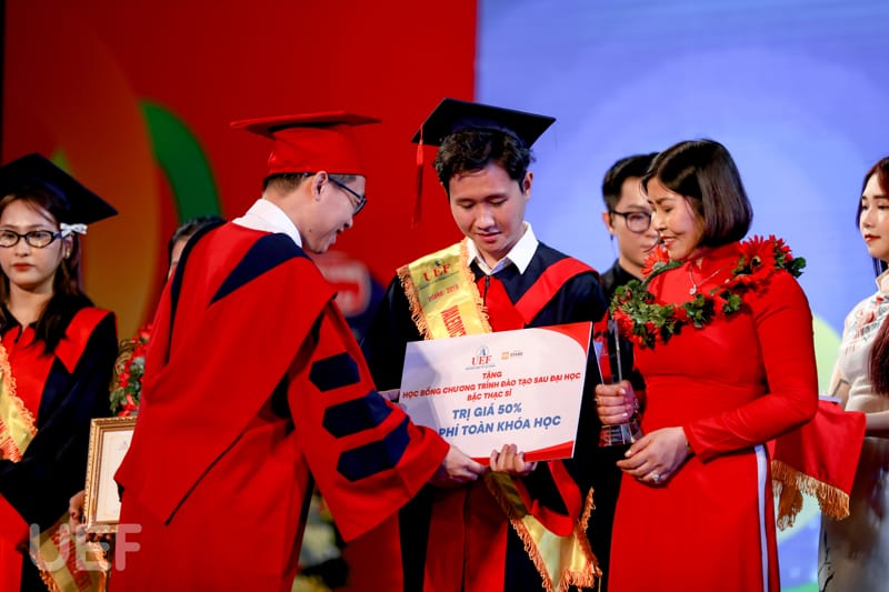Bên cạnh khen thưởng và vinh danh thành tích tại Lễ tốt nghiệp vừa qua, các bạn tân Thủ khoa còn nhận được học bổng 50% cho chương trình đào tạo thạc sĩ. Đây là nguồn động lực tinh thần nhằm khích lệ các bạn tiếp tục hành trình chinh phục tri thức tại UEF.