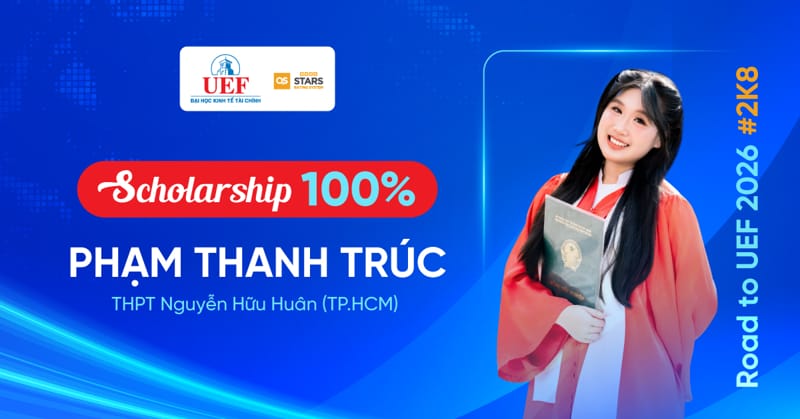 “Trong giai đoạn ‘nước rút’, học bổng sớm từ UEF giúp em giải tỏa áp lực tâm lý và an tâm hơn. Đây cũng là lời nhắc nhở cho em nỗ lực gấp đôi để duy trì phong độ và hoàn thành kỳ thi tốt nghiệp THPT với kết quả xứng đáng nhất”, chia sẻ của bạn Phạm Thanh Trúc (THPT Nguyễn Hữu Huân - TP.HCM) khi đạt học bổng sớm 100% tại UEF.