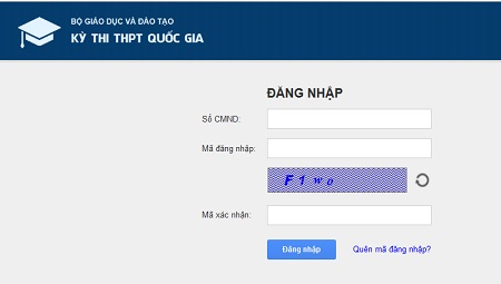Thí sinh sau khi nộp Phiếu đăng ký dự thi sẽ được nơi tiếp nhận Phiếu đăng ký dự thi cấp một tài khoản và mật khẩu để đăng nhập vào phần mềm quản lý thi qua internet tại địa chỉ http://thisinh.thithptquocgia.edu.vn.