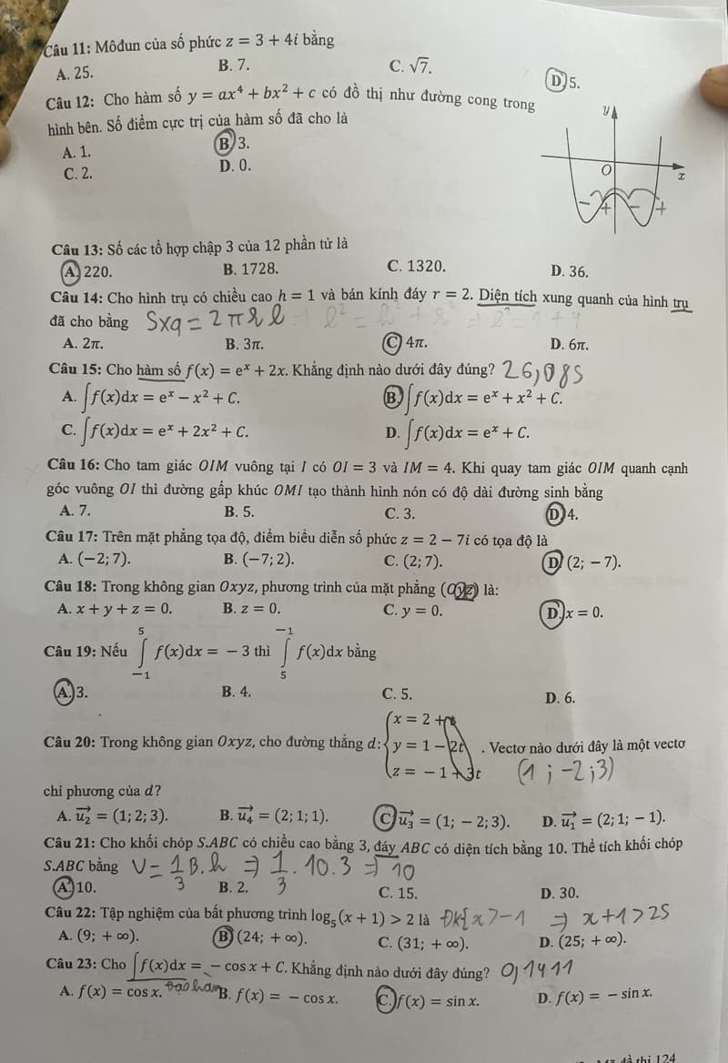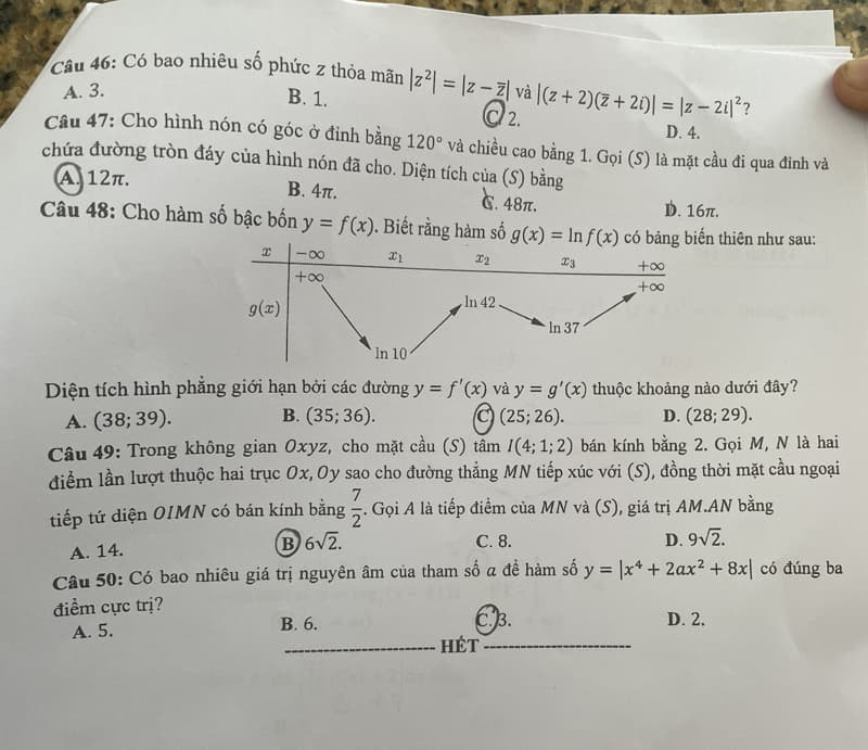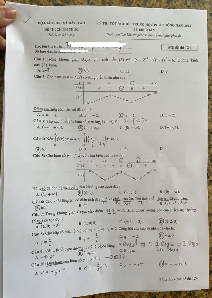 > Đáp án chính thức môn Toán - kỳ thi tốt nghiệp THPT 2022