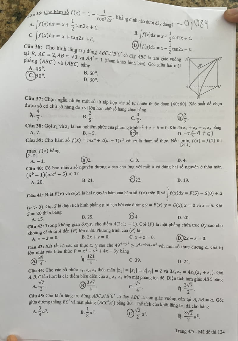 | 41.D | 42.D | 43.A | 44.D | 45.C | 46.C | 47.D | 48.D | 49.C | 50.C |
